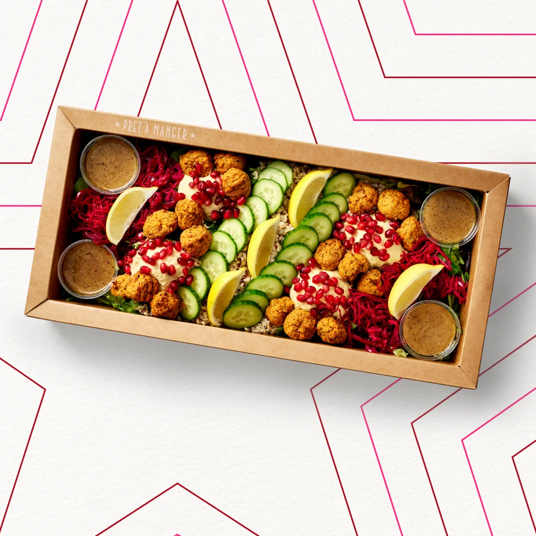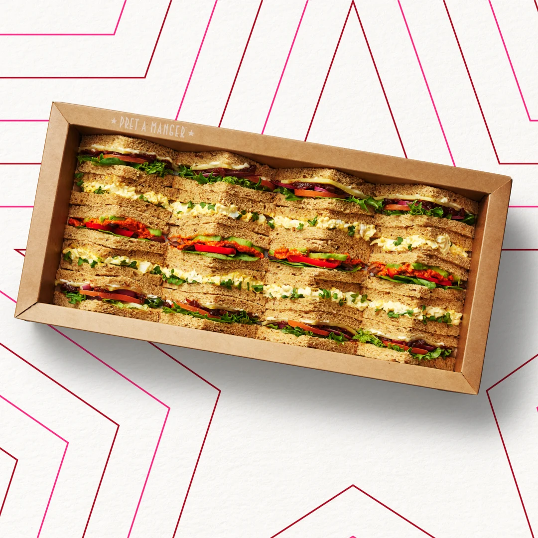 A quick way to order vegetarian food for up to ten hungry people, the Pret Vegetarian Lunch Bundle includes sandwich and salad platters, crisps, soft drinks and sweet treats. Vegan-friendly options included.