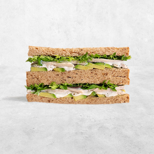 Malted Wholegrain Bread (Wheat Flour (Wheat Flour, Calcium Carbonate, Iron, Niacin, Thiamin), Water, Malted Wheat Flakes, Wheat Bran, Wheat Gluten, Vinegar, Salt, Malted Barley Flour, Yeast, Emulsifiers: Mono- and Diacetyl Tartaric Acid Esters of Mono- and Diglycerides of Fatty Acids, Mono- and Diglycerides of Fatty Acids; Flour Treatment Agent: Ascorbic Acid; Wheat Starch), Avocado (30%), Chicken Breast (20%), Salad Vegetable Mix in varying proportions (Apollo Lettuce, Spinach, Red Chard, Red Salanova® Lettuce, Baby Red Leaf Lettuce), Natural Yoghurt (Milk), Rapeseed Oil, Water, Basil, Salt, Free-Range Egg Yolk, Sea Salt, Black Pepper, Spirit Vinegar, Sugar, Cornflour.