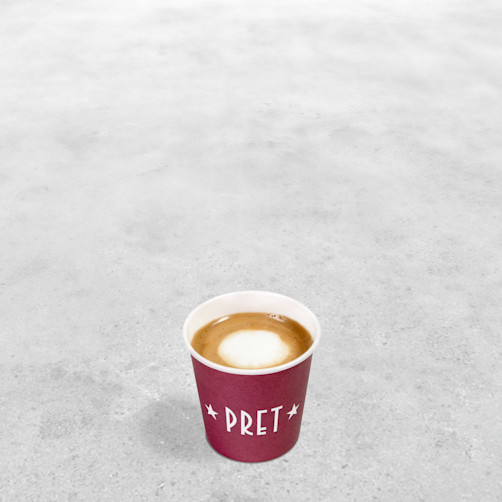 Pret’s signature organic espresso finished with a dash of silky steamed milk. Served as a 4oz drink All our Barista prepared drinks are also available decaffeinated. Both skimmed and semi-skimmed milks are available, as well as milk alternatives